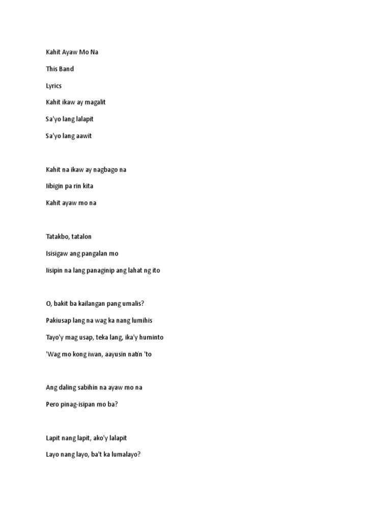 Lyrics Docx 1 Kahit Ayaw Mo Na This Band Kahit Ikaw Ay Magalit Sa Yo Lang Lalapit Sa Yo Lang Aawit Kahit Na Ikaw Ay Nagbago Na Iibigin Pa Rin Kita Course Hero