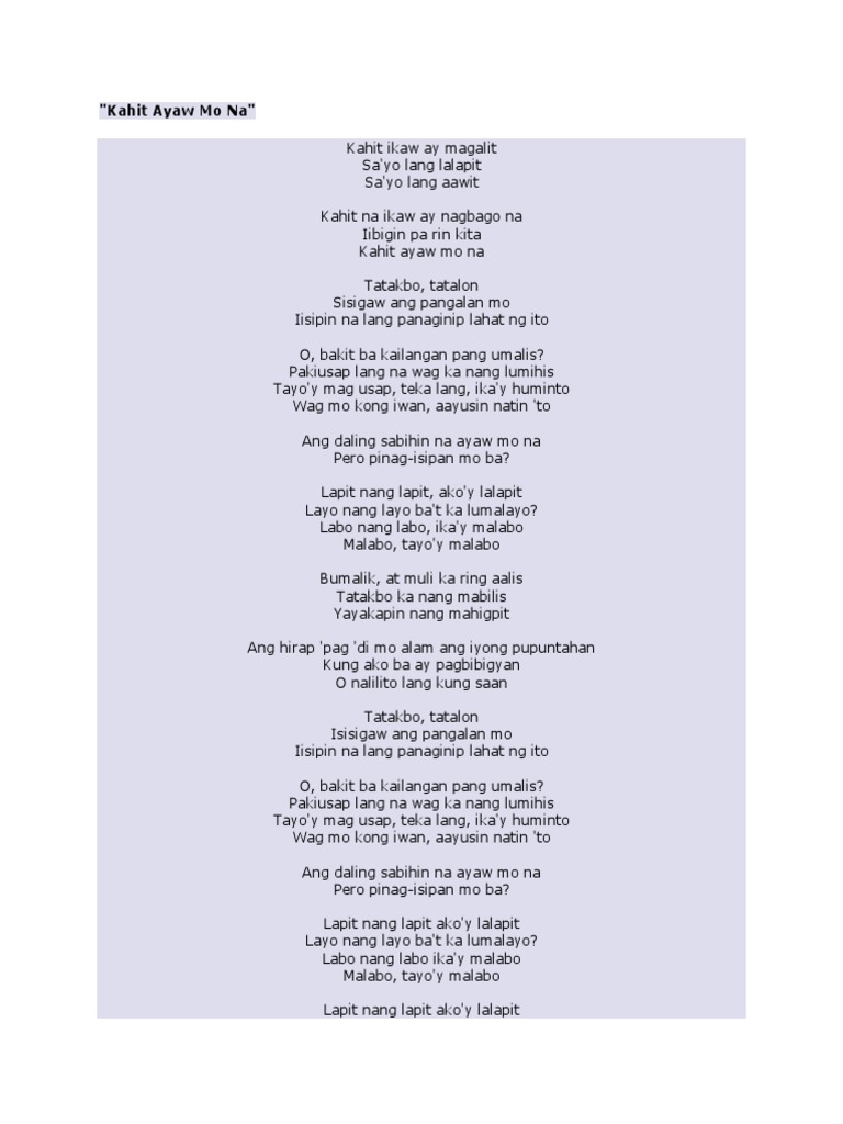 Kahit ayaw mo na lyrics pdf. Kahit Ayaw Mo Na English Version lyrics. Song Lyrics Of Kahit Ayaw Mo Na - Health TipsMusicCars and. Create and get 5 IQ.
